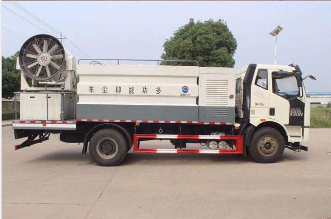 國六解放12方噴霧抑塵車,噴霧抑塵車又稱:多功能抑塵車、降塵車、霧炮車、空氣凈化車。主要是在灑水車的基礎上,增加了遠距離噴霧抑塵系統,對治理工業粉塵污染、汽車尾氣、秸稈燃燒等產生在空氣中的細小懸浮顆粒有顯著的效果,被人們成為“治霾神器”。多功能抑塵車主要作用是噴霧抑塵,同時具備灑水和道路沖洗功能,還可進行工地降塵、環保除塵、空氣凈化等作業。風送式噴霧大炮可達30-120米不等,霧炮筒可360°旋轉,可遙控操作。操控方便,移動靈活。