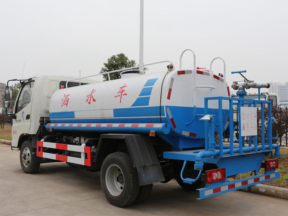福田奧鈴5方灑水車水罐上裝配置:罐體容積可依據車輛公告制作灑水車,廠家標準罐體鋼板為4mm厚碳鋼Q235材質(用戶也可選用不銹鋼板材),罐內隔板具有防波作用,以減輕汽車行駛時罐體液體沖擊,罐體及整車外形尺寸按照公告。帶大功率專用灑水泵,可自吸自排,整車前沖、后灑、側噴、帶65消防接口,后平臺帶綠化灑水炮,灑水炮可全方位旋轉,可連續調成直沖狀、大雨、小雨、毛雨;前封頭帶水位計,后平臺主管路帶1付澆花接口,后爬梯。平臺后部帶小安全告知牌:“隨時停車,注意安全”,帶兩根水管及陰陽端。罐體顏色:上白下藍,銀灰/銀藍,罐體兩側噴“灑水車、綠化噴灑車”字樣,貼反光標示。灑水車可加裝前沖后灑氣動閥駕駛室控制、可加裝霧炮機組發電機組噴霧降塵裝置、車頭可加裝推雪雪鏟、雪滾裝置街道、公路除雪等。