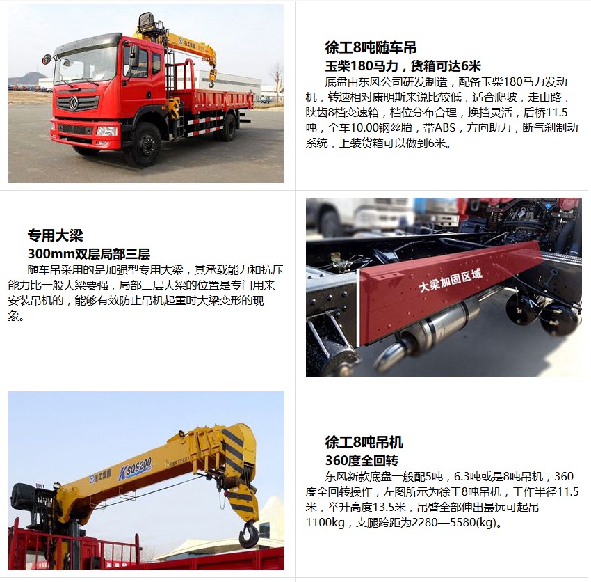 僅選用3800,3950,4700,5100,5600軸距;僅選用10.00-20,10.00R20輪胎;隨底盤選裝駕駛室.選裝箱板結構,選裝上/中座椅操作,可選裝直臂式或折臂式吊機,直臂式吊機:型號/吊機質量(kg)/最大起升載荷(kg)/載質量(kg)分別為:(SPS15800,SQ114,QYS-6.3III,SQS-6.3III,URV630,nicoleV630)/2102/4500/3290(2人),3255(3人);2.(SPS20000,SQ200,QYS-8,SQS-8III,URV800,nicoleV800)/3300/5500/4290(2人),4225(3人);折臂式吊機的分別為:1.(SQ6.3Z,QYS-6.3Z)/2300/4500/3290(2人),3255(3人);2.(SQ8Z, QYS-8Z)/3500/5500/4290(2人),4225(3人);外形尺寸/軸距/前懸/后懸對應關系分別為:7100/3800/1250/2050(1450/1850),7350/3950/1250/2150(1450/1950),8530/4700/1250/2580(1450/2380),9000/5100/1250/2650(1450/2550),9000/5600/1250/2150(1450/1950);發(fā)動機對應油耗值為:YC6J180-50/24.3L/100km,YC4EG160-50/24.8L/100km,ISD185 50/24.7L/100km,ISD210 50/24.5L/100km,CA4DLD-15E5/24.0L/100km;側防護:材質Q235,連接方式螺栓連接.后下防護:材質Q235,連接方式焊接連接,斷面尺寸120?0mm,離地高度520mm;該車應安裝具有衛(wèi)星定位功能的行駛記錄儀.ABS型號為:3631010-C2000,生產廠家為:東科克諾爾商用車制動系統(tǒng)(十堰)有限公司.