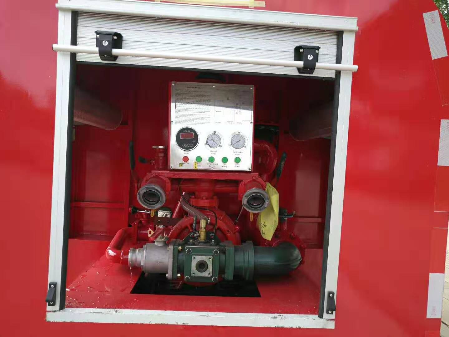 整車安裝了消防專用夾心式取力器,正規(guī)消防泵和消防炮,消防炮流量大,每秒20L,射程遠(yuǎn),達(dá)45米左右,充分展現(xiàn)了消防滅火功能。